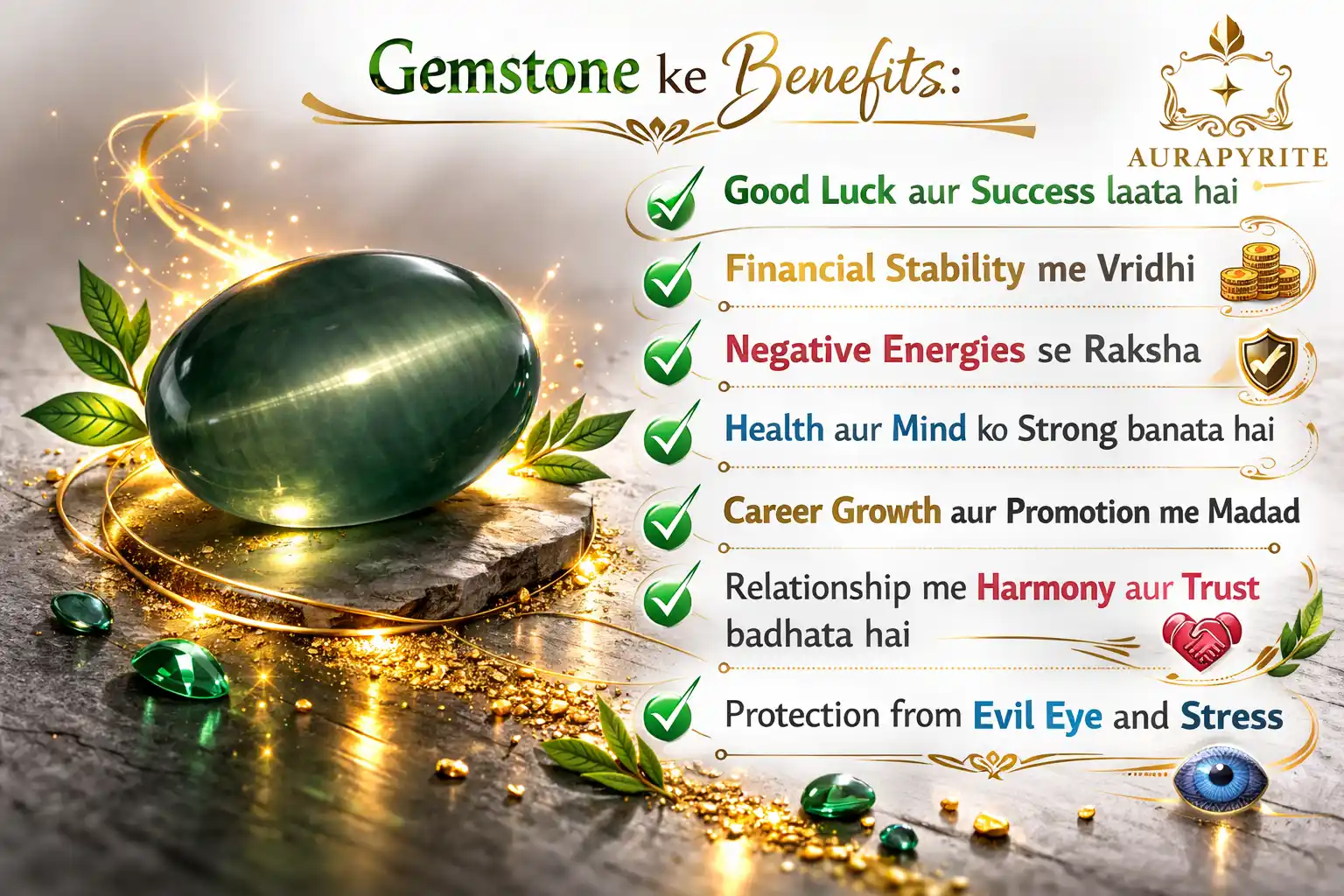 Premium Natural Cat Eye (Lehsunia) Stone | Original Ketu Gemstone for Protection & Luck