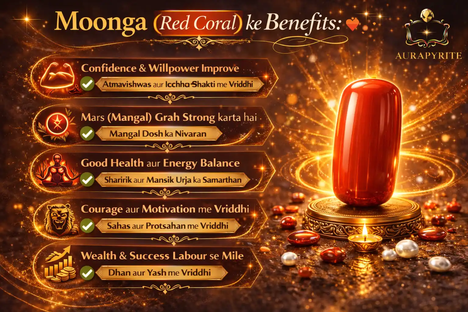 Premium Natural Red Coral (Moonga) Stone untreated, unheated | Original Mangal Gemstone for Strength & Confidence