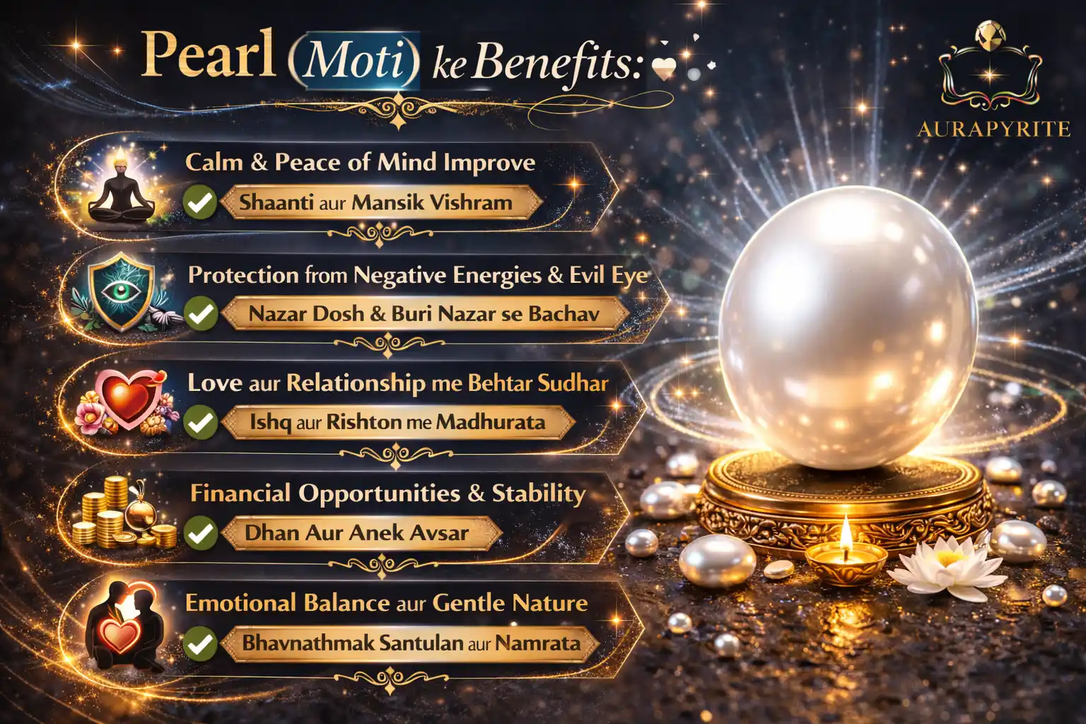 Premium Natural Pearl (Moti) Stone | Original Chandrama Gemstone for Peace & Emotional Balance