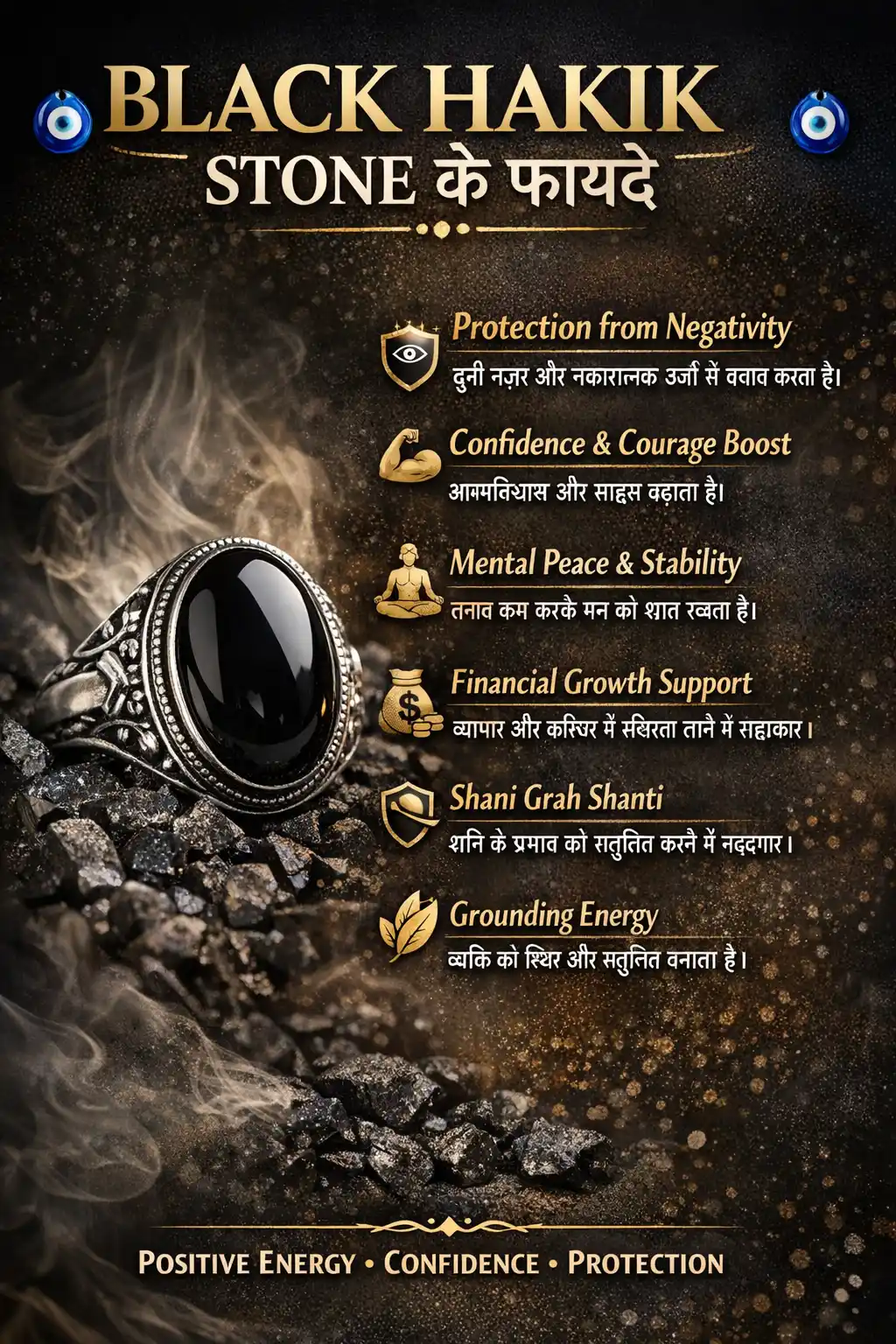 Original Black Hakik Stone for Men & Women – Natural Protection, Confidence & Positive Energy Stone (Certified Agate